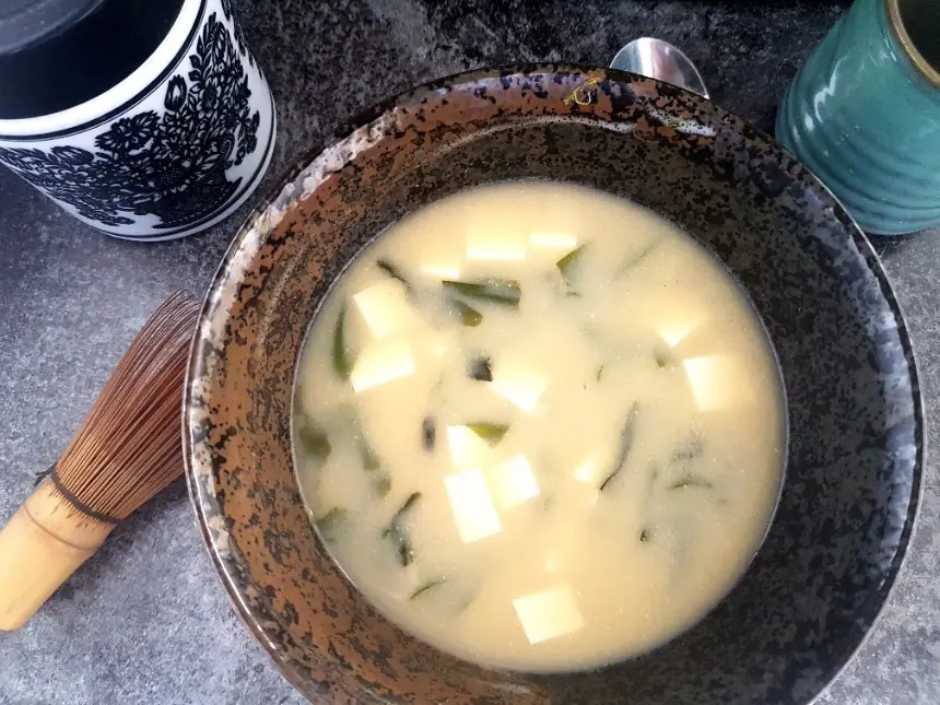 Während meines Studiums in Japan habe ich diese Misosuppe geliebt. Morgens vor der Uni gab es dazu immer eine Schale mit weißem Reis. Die meisten Deutschen können sich sowas als Frühstück wahrscheinlich gar nicht vorstellen. Nach wenigen Tagen gewöhnt man sich aber schon danach und dann fühlt man sich einfach energiegeladen. Gelegentlich gab es auch einige Shirataki-Nudeln als Einlage.