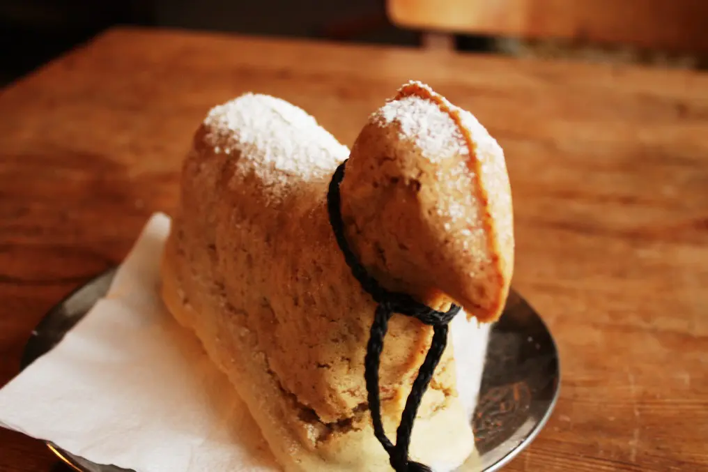- Am Ende der Backzeit das Osterlamm auskühlen lassen. Danach aus der Form entfernen und mit dem Puderzucker bestreuen, den ihr durch ein feinmaschiges Sieb gebt.